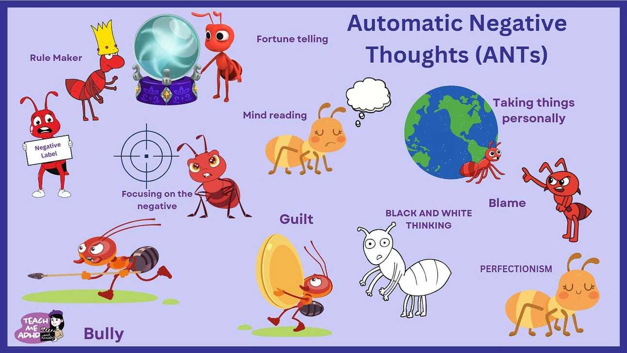 Negative thinking refers to a pattern of automatic, pessimistic thoughts about oneself, others, or the world. I like to call them ANTs, Automatic Negative Thoughts, when I talk to kids and teens.