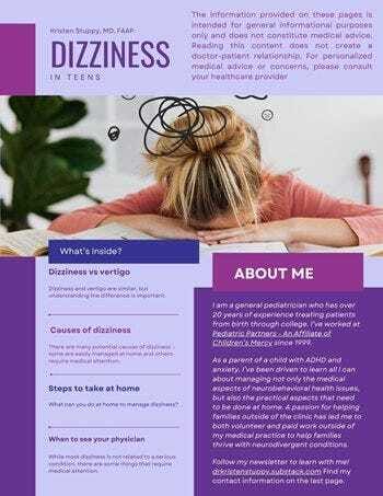 I wrote an e-book on dizziness as part of a promotional series. Sign up for it here: Dizziness in teens